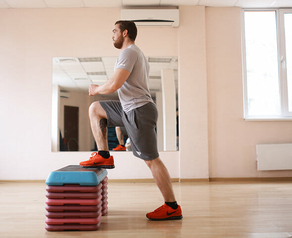 - На скамью положить одну ногу, предварительно согнутую в колене.