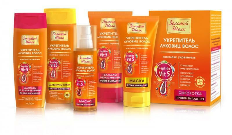 Есть целая линия «Золотой шелк», в который входят средства, активирующие рост волос — бальзам, шампунь, сыворотка, масла. Все это лечебная косметика, действие которой направлено на ускорение регенерации волосяного фолликула. Она препятствует процессам затвердевания коллагена вокруг луковиц, укрепляет волосы и т. д.