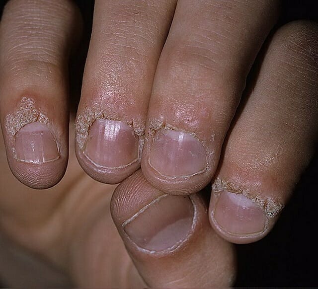 Образуется на руках и ногах с тыльных сторон, большом пальце или других. В диаметре достигает до 1 см. Может исчезать самостоятельно, без лечения.