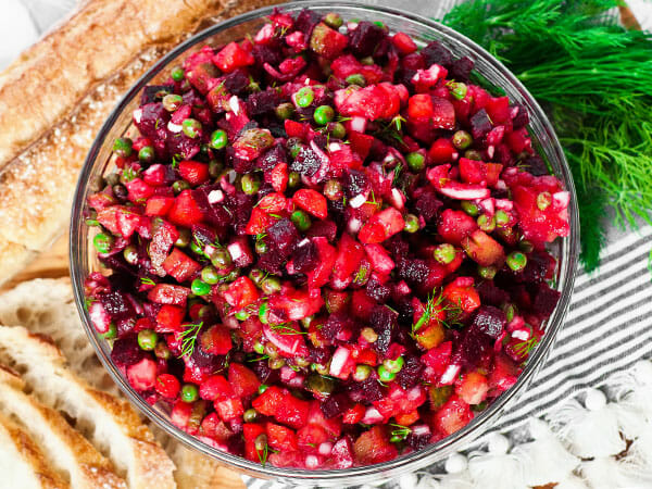 - Морковь, картофель и свеклу отваривают вместе с кожурой, только затем очищают и нарезают кубиками.