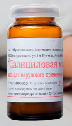 Данное средство широко применяется в дерматологии для лечения различных заболеваний, в том числе папиллом. Для их терапии в аптеке необходимо приобрести 60%-ную салициловую мазь. Она хорошо высушивает образование. После нанесения средства возможны жжение и боль, поэтому на лице ее применять не рекомендуется.