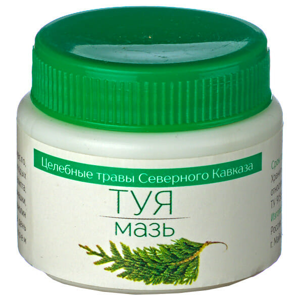 Средство изготавливается на основе масла, которое добывается из листьев и коры туи. Действующее вещество туйлон убивает ВПЧ, после чего папиллома самостоятельно отпадает, а здоровые слои кожи на месте поражения восстанавливаются. Масло туи можно добавить в любой крем и использовать для удаления новообразования.