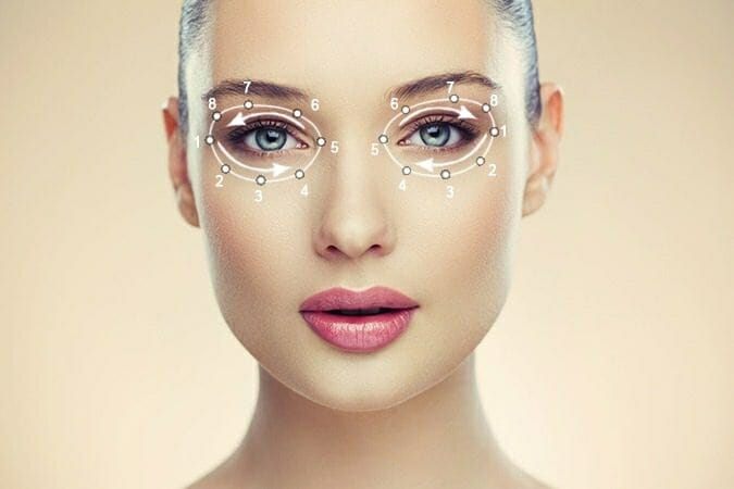 - Аналогично обработать второй глаз, вбивая мазь в кожу легкими движениями подушечек пальцев.