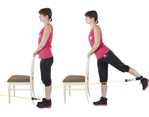 - Произвести 10-12 отведений левой ноги назад и вверх.