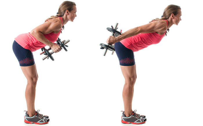 - Взять в руки небольшие гантели и разместить их по бокам туловища на прямых руках.