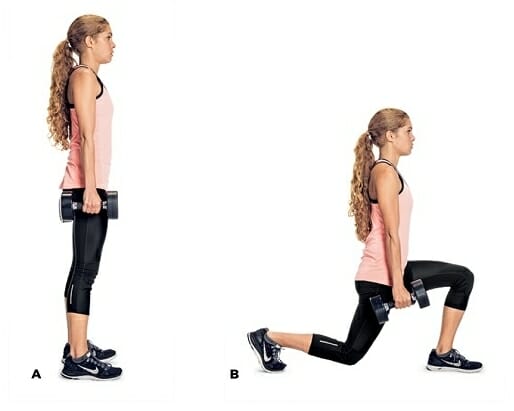 Выполняется упражнение в 4 подходах по 10-12 повторений в каждом из них. Девушкам в самом начале тренировочного процесса осуществлять выпады можно с собственным весом без использования отягощений. Спустя 4-6 недель регулярных занятий рекомендуется увеличить нагрузку на мышцы ног с помощью гантелей, гири или другого снаряда.