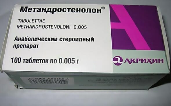 | Метандростенолон | Таблетки содержат в себе мощный анаболический андроген — метандиенон. Попадая в кровь, лекарство вызывает резкий скачок тестостерона, что сопровождается повышением аппетита, задержкой жидкости в организме, увеличением скорости синтеза белка, улучшением настроения. Прием матандростенолона дает возможность набирать до 8-10 кг веса всего за 4 недели. Противопоказан при заболеваниях печени, раке груди. Побочные действия могут проявляться скачками давления, огрублением голоса, увеличением клитора, угревой сыпью, повреждением печени | |