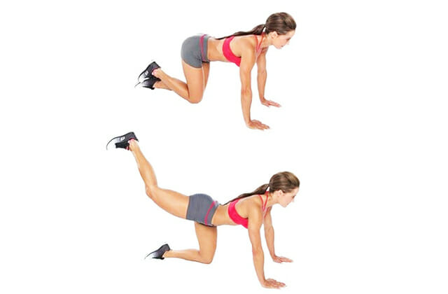 Изолированное упражнение для тренировки задней поверхности бедер и ягодиц эффективнее всего выполнять в позиции стоя на четвереньках. Для повышения мышечной нагрузки целесообразно использовать специальные утяжелители, закрепив их на голени. Махи можно осуществлять как прямой ногой, так и согнутой в колене.
