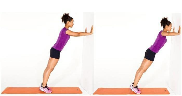 - Наклонить тело вперед, упершись ладонями в вертикальную поверхность (исходное положение).