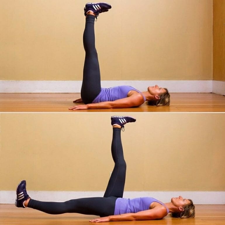 Упражнение позволяет акцентировано нагрузить нижний пресс — часть живота, имеющую наибольшее скопление жировых отложений. Рекомендуется осуществлять подъемы поочередно каждой ногой.