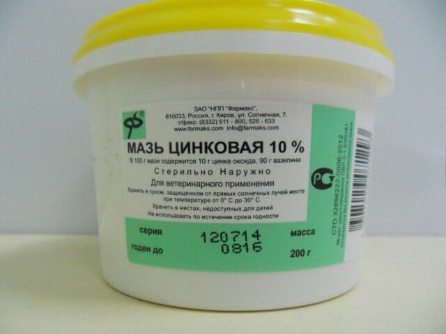 Средство содержит вазелин и оксид цинка. Оно дезинфицирует раны, подсушивает кожу.