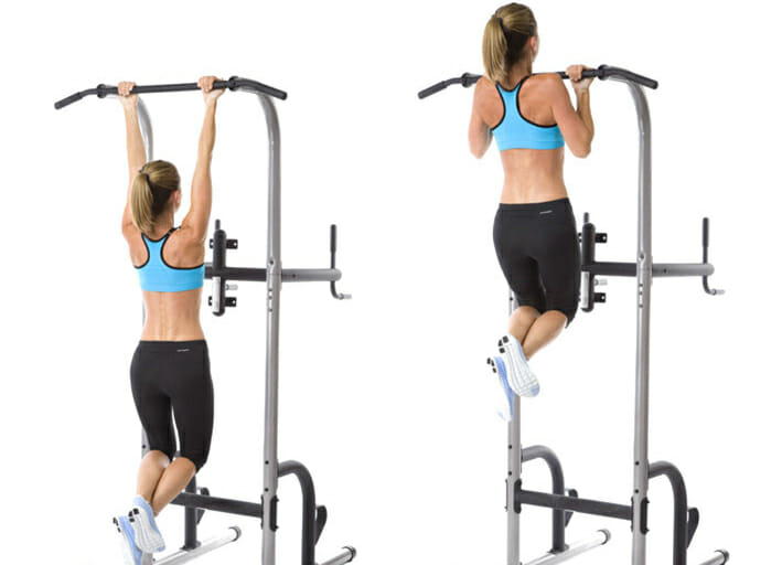 Упражнение можно выполнять дома на обычном турнике, закрепленном в дверном проеме. Женщинам с патологическим ожирением и имеющим слабые руки делать подтягивания нужно на низкой перекладине, зафиксированной примерно на расстоянии 1 м от уровня пола.
