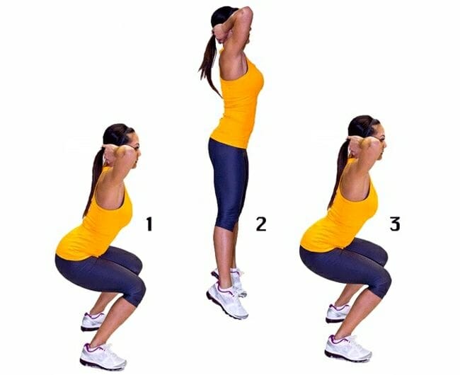 - Опуститься в позицию сидя на корточках.