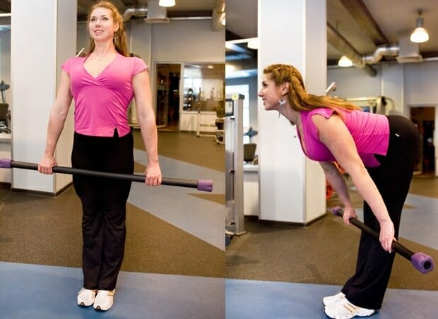 - Наклонить корпус вперед таким образом, чтобы между бедрами и спиной получился угол в 90 градусов.