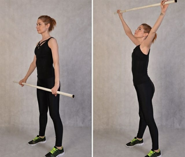 Подъемы гимнастической палки перед собой