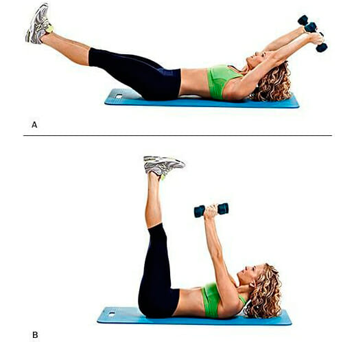 - Зафиксироваться в таком положении на 3-5 секунд и вернуться в позицию лежа.