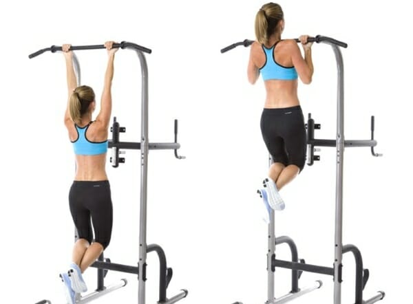 - На выдохе произвести подтягивание корпуса к перекладине.