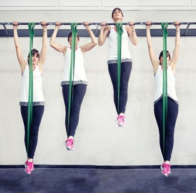 Также значительно облегчает процесс подтягиваний эспандер. Резинку можно использовать на начальном этапе, когда девушка не может подтягиваться самостоятельно.
