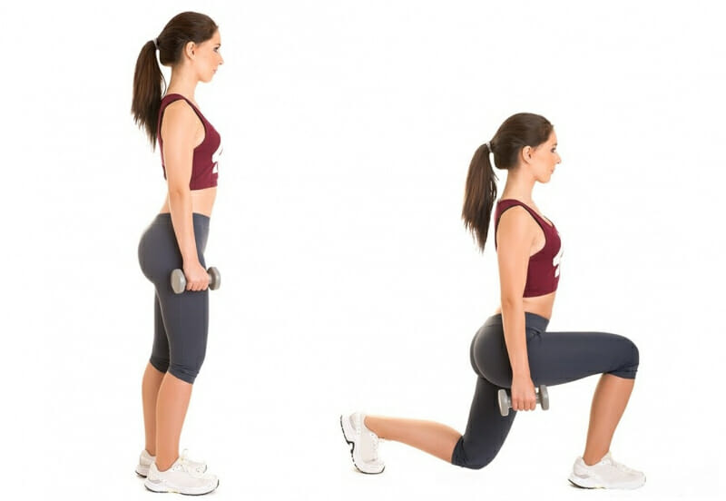 Выпады с гантелями