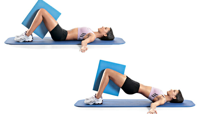 Упражнение помогает быстро увеличить попу в объеме, сделав ее более упругой и округлой. Новичкам, чтобы лучше чувствовать мышцы ягодиц и задней поверхности бедер, рекомендуется использовать маленькую подушку.