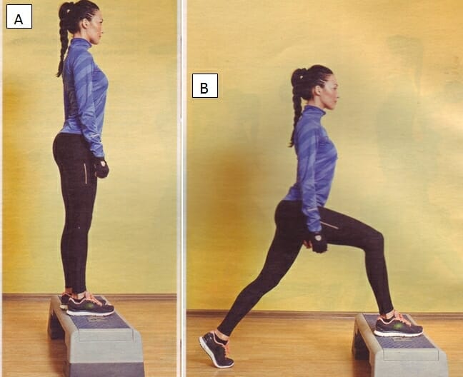 В отличие от длинных, такие выпады со степ платформы производятся в обратную сторону (т. е. назад). Использование возвышенности дает возможность оказать новую, непривычную нагрузку на мышцы попы и ног, дав им новый стимул для мышечного роста.