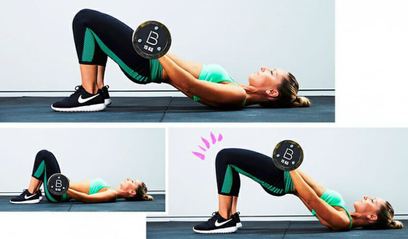 Использование отягощения при выполнении «мостика» позволяет создать дополнительную нагрузку на ягодичные мышцы.
