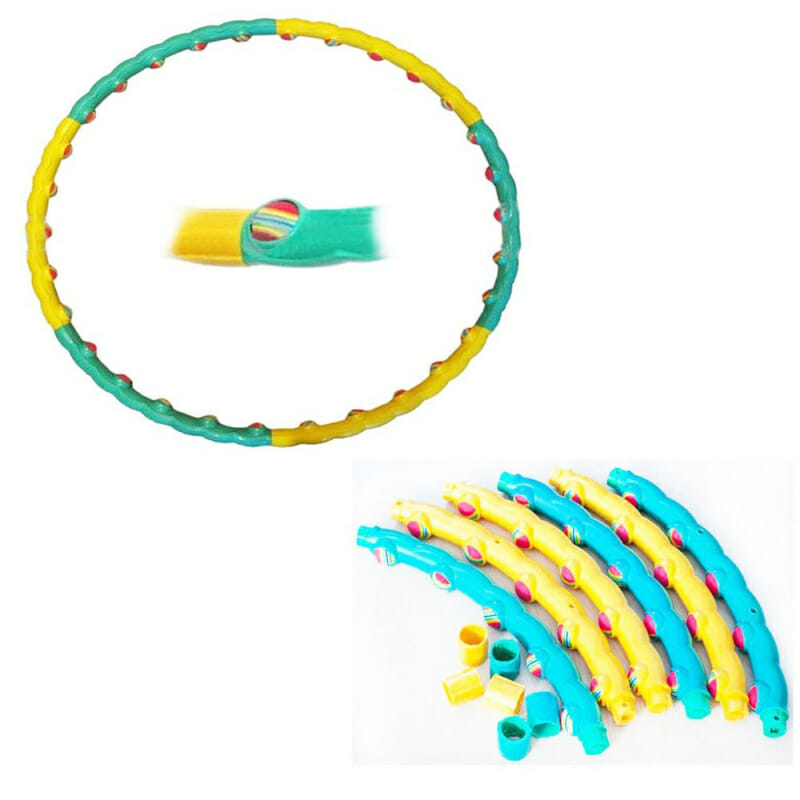 С внутренней стороны расположены дополнительные присоски, выступы или шарики. Обруч является одним из наиболее действенных, быстрее других избавляет от подкожных жиров. Недостаток заключается в том, что шипы могут оставлять синяки на теле. Поэтому для новичков такая разновидность не подойдет | Необходимо защищать кожу. Такой обруч подходит только для талии. Крутить его необходимо в обе стороны в максимальном темпе |