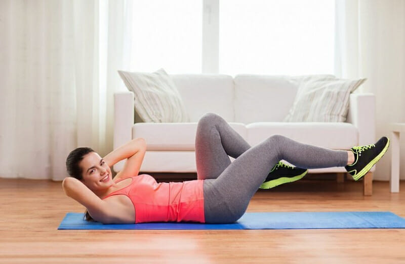 Лежа на полу необходимо поместить руки на пресс, а ноги поставить на пол. В таком положении нужно поднимать туловище. Выполняя упражнение, важно контролировать технику, во избежание нежелательных травм и неэффективности тренировочных действий.