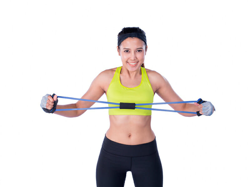 Рекомендуется приобрести регулируемый эспандер, который необходимо растягивать руками (можно ослабить при необходимости). Его используют для того, чтобы укрепить мышцы груди и спины.