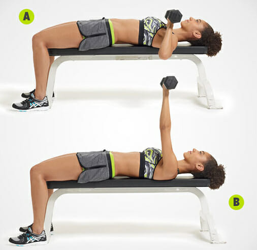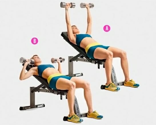 - Поднять гантели вверх и расположить их над верхней частью груди.