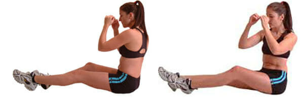 - Удобно сесть на ягодицы, спину и ноги выпрямить, руки согнуть в локтях, кисти поднять вверх и держать рядом друг к другу.
