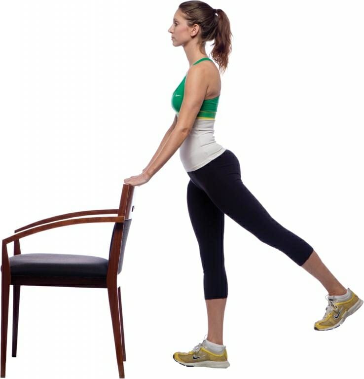 Понадобится любая опора для рук — стул, шкаф или стена. Техника выполнения: