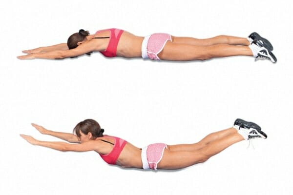 - Лечь на живот, руки вытянуть вперед, ноги выпрямить.