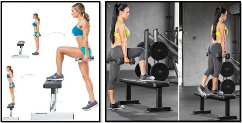 Заход на платформу, или восхождения, — это усредненный вариант между выпадами и кардионагрузкой. Эффект от упражнения — интенсивное жиросжигание, проработка мышц бедра и ягодиц.