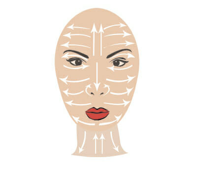 Чтобы избежать растяжения кожи, крем нужно наносить строго по массажным линиями. Эти условные ориентиры соответствуют направлению оттока лимфы, а также расположению коллагеновых волокон. При неправильном нанесении естественный коллаген может разрушиться.