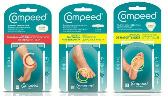Представляет собой силиконовые наклейки разных форм. С их помощью можно предупредить любые наросты или уменьшить болезненные ощущения от уже появившихся. Для профилактики Компид нужно располагать в той области, где больше всего ощущается давление, или подкладывать под стопу, чтобы минимизировать натирание при неудобном заднике обуви.