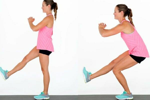 - Приседать на другой ноге до момента, пока бедро не станет параллельно полу.