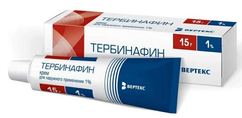 Чаще всего грибковую инфекцию лечат Тербинафином в виде крема или мази. При этом лечение должно быть курсовым: