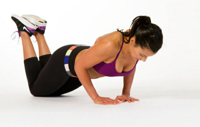 Трудное упражнение для женщины, но самое эффективное. При отжимании носками и ладонями нужно опираться об пол, спина должна быть ровной.