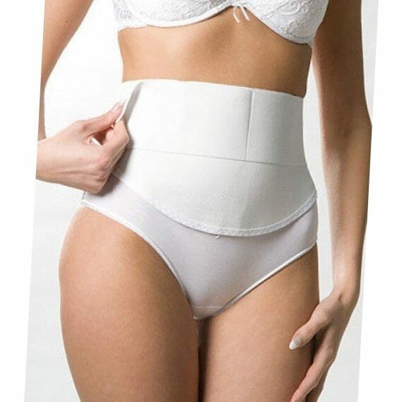 Более удобным вариантом считаются послеродовые бандажные трусы. Это белье со специальной утягивающей вставкой прочно удерживается на фигуре, его можно носить под любую повседневную или нарядную одежду. Некоторые модели бандажных трусов позволяют даже регулировать силу утяжки — для этого предусмотрены боковые застежки, обычно на липучке.
