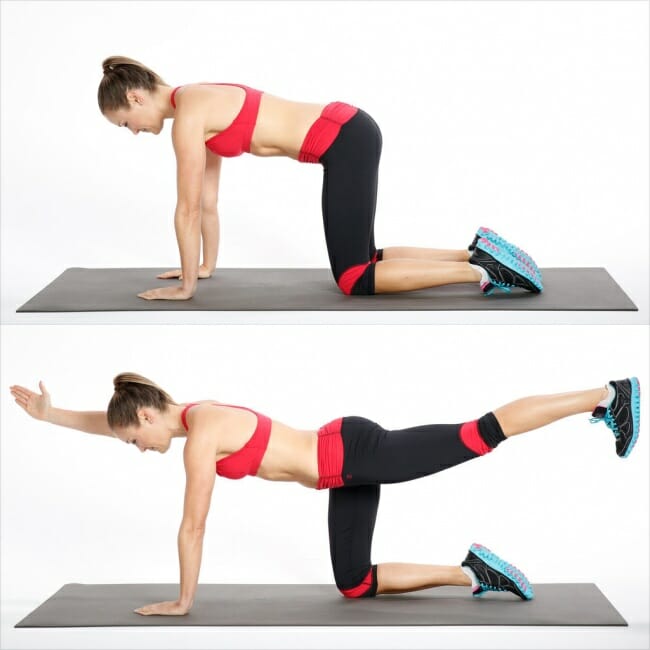 - Поменять руку и ногу и повторить движение.