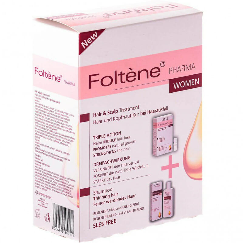 В число составляющих этого средства входит множество витаминов, аминокислот и минеральных соединений, которые направлено действуют на укрепление волосяных луковиц. Фолтена Фарма обладает антиоксидантным действием, регулирует метаболические процессы в организме, усиливает рост прядей и лечит перхоть.