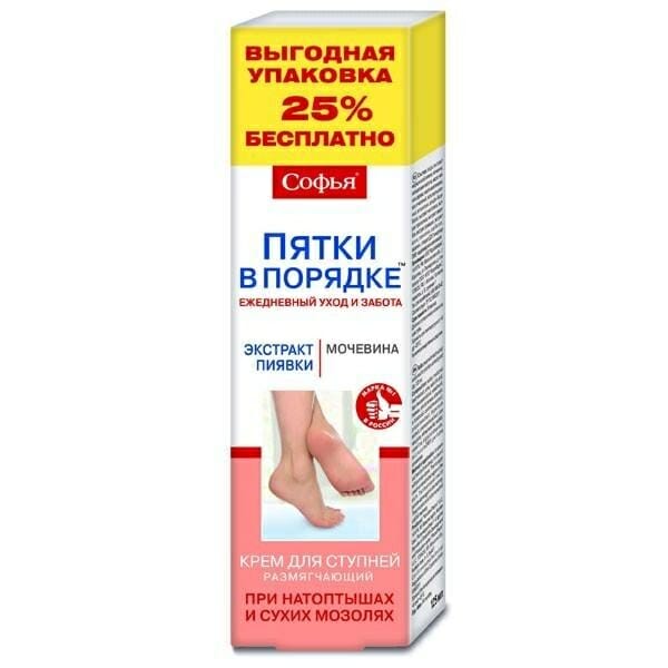 Крем оказывает размягчающее воздействие на огрубевшие участки, благодаря наличию салициловой кислоты, эфирных масел, мочевины и пиявочного экстракта. Эти компоненты позволяют быстро избавиться от сухих мозолей.