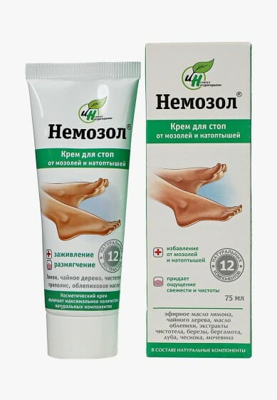 В состав этого крема входят салициловая кислота и сера, которые оказывают кератолитическое действие. Кремом необходимо смазывать загрубевшие участки стопы 1-2 раза в сутки. Если новообразование застарелое, рекомендуется накладывать средство толстым слоем и закрывать повязкой.
