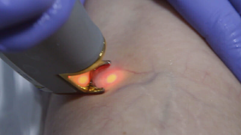 В основе этой технологии лежит фототермолизная селекция. С помощью лазерной установки излучаются волны заданной длины, вызывающие подогрев кровяных клеток. В результате происходит коагуляция, и стенки расширенного сосуда склеиваются. После такой обработки сосуд рассасывается в течение месяца.