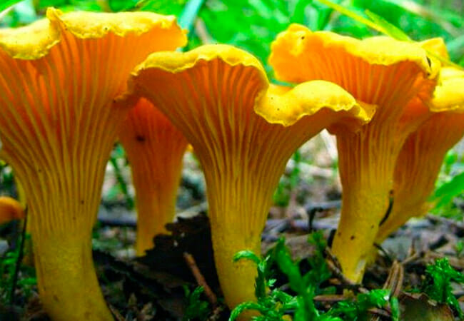 Лисички просто отличить от других видов по своеобразной форме шляпки и оранжевому окрасу. Другой особенностью станет слизистая поверхность, плотное тело и ножка. Вырастают лисички до 4 см в высоту с диаметром шляпки до 5 см. Чаще всего встречаются в травянистой местности с хорошим доступом солнечных лучей. В лесу лисички не растут.