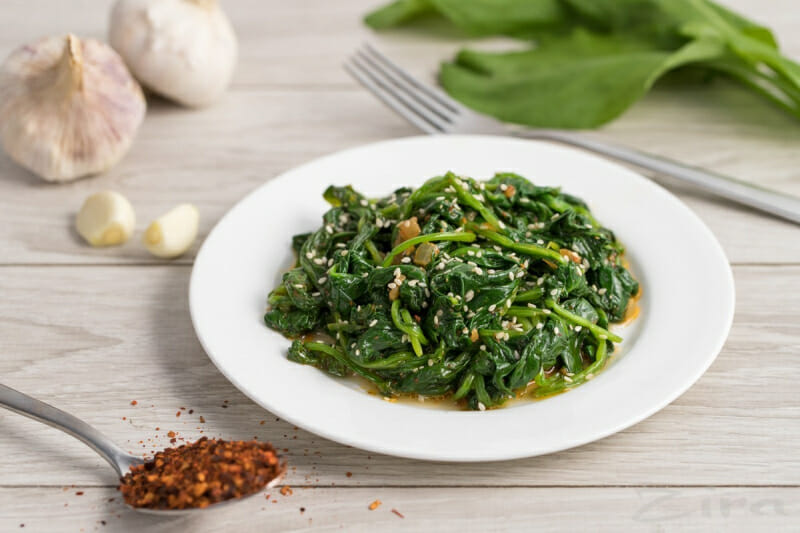 - Готовое блюдо полить оливковым или горчичным маслом, посыпать семенами кунжута.