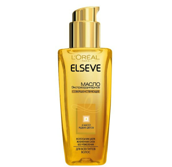 Масло ЛОреаль помогает бороться с секущимися кончиками и выпадением волос, укрепляет локоны, улучшает состояние кожи головы. При этом оно обладает приятным запахом и легко наносится — флакон оснащен удобным дозатором, который можно увидеть на фото. Это несмываемое средство — после его нанесения не требуется повторно мыть голову.
