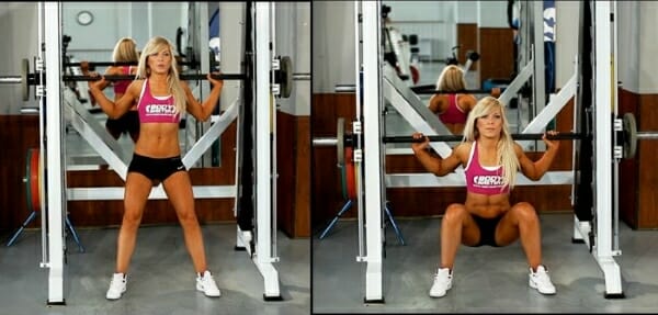 Выполнять приседания можно в раме (машине Смита). При этом снижается нагрузка на мышцы спины, поэтому упражнение считается немного менее энергоемким, чем классические приседания.