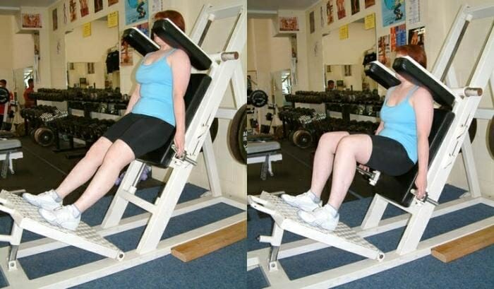 Подобно приседаниям в раме, упражнение в гакк-машине выполняется с минимальной нагрузкой на спину, но при этом эффективно прорабатываются бедра и ягодицы.